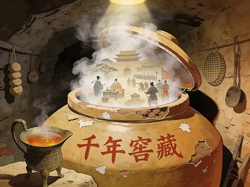 待雾气稍散,再观池中酒醅,骤然彻悟老师傅所言:关中玉液岂 是人力所酿?分明是这方水土攥紧日月雨露,将每粒高粱哺育出精 魂;是光阴如慈母育婴,于年轮更迭间轻哄慢护,方令这缕甘醇,从 《诗经》的余韵里,一路甜至此时。
